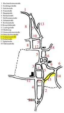 Bischmisheimerstraße | Eschringerstraße | Fabrikstraße | Franzstraße | Hauptstraße | Heimelstraße | Hofbrunnenstraße | Johannstraße | Kirchenstraße | Kreuzfeldstraße | Ludwigstraße | Marktweg | Ommersheimerstraße | Ormesheimerstraße | Schneckenstraße | Schulstraße | Spitalstraße | Tälchenstraße | Breitenbergerhof | Ensheimerhof | Gassenmühle | Thalmühle | Reichenbrunn | Sengscheid