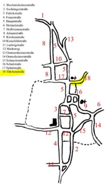 Bischmisheimerstraße | Eschringerstraße | Fabrikstraße | Franzstraße | Hauptstraße | Heimelstraße | Hofbrunnenstraße | Johannstraße | Kirchenstraße | Kreuzfeldstraße | Ludwigstraße | Marktweg | Ommersheimerstraße | Ormesheimerstraße | Schneckenstraße | Schulstraße | Spitalstraße | Tälchenstraße| Breitenbergerhof | Ensheimerhof | Gassenmühle | Thalmühle | Reichenbrunn | Sengscheid