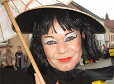 In Ensheim sah und sieht man auch Schwellköpfe, einen sog. Schwolles, den man Tage vorher uss Zäilungspabìer ùnn Mählbabb sälwa gebosseld hadd (Bild links).