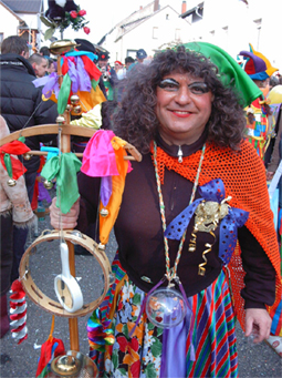 Natürlich gibt es auch Narren, die sich mit entsprechendem Zubehör ausstatten und besonders mobil sein wollen, zum Beispiel auf Rollschuhen oder mit dem Fahrrad oder einem Wäänche [Handwagen]. Dies ist vor allem beim Ensheimer Umzug am Rosenmontag sehr interessant-