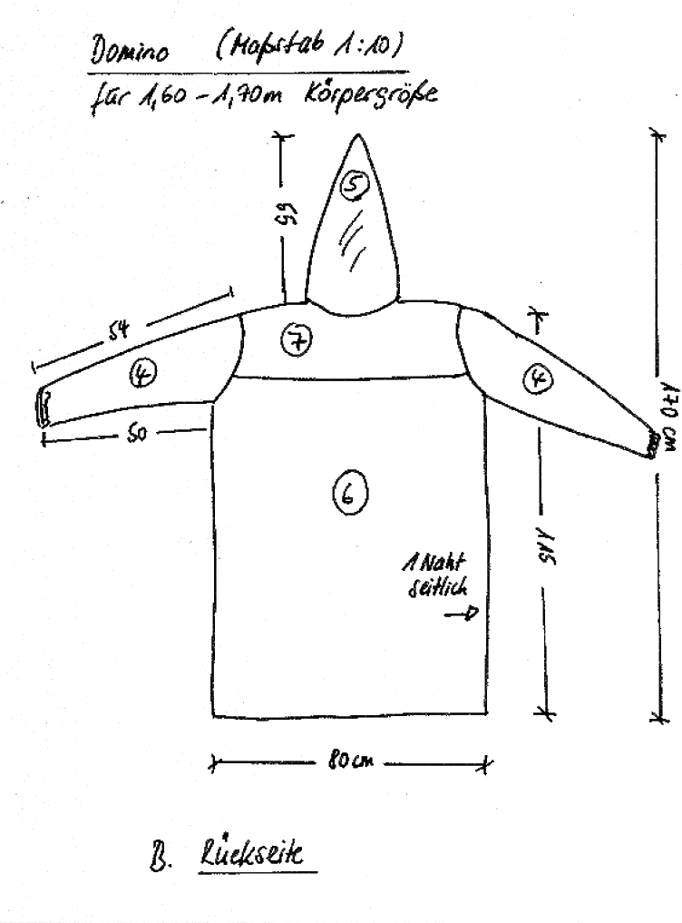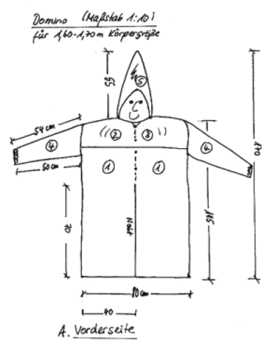 Hier eine schematische Ansicht von einem Domino aus meinem »Faasenachdskoffa« (leider ohne Schnittmuster ...):