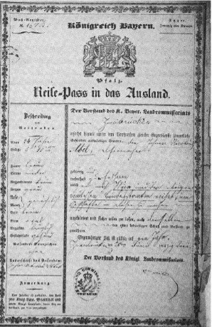 Der hier gezeigte Reisepass wurde am 20. Juni 1843 durch das Königliche Landkommissariat Zweibrücken für den Ensheimer Dosenmacher Johann Nicolaus Abel ausgestellt, damit dieser ungehindert nach Wien und in die übrigen deutschen Bundesstaaten reisen konnte, um "Geschäfte in Dosen zu machen".