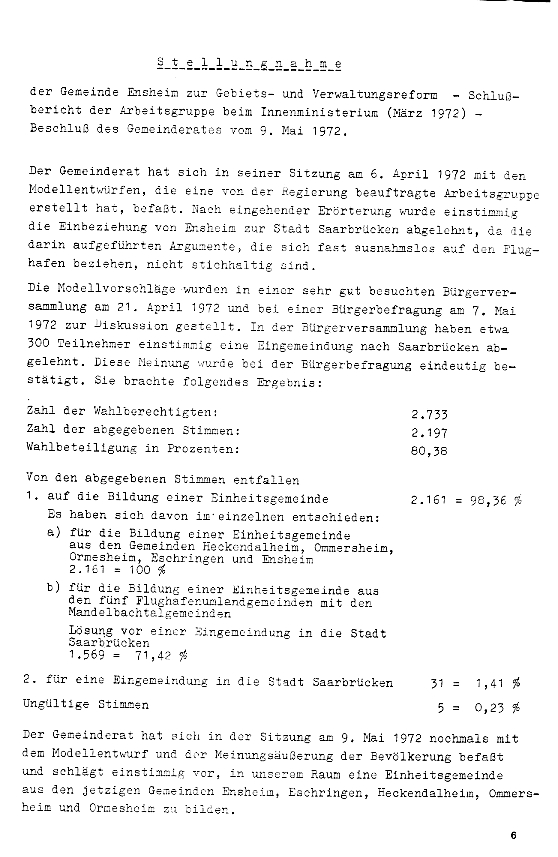 Home / Ensheimer Geschichte im Überblick / Ensheim im 20. Jahrhundert / Ensheim und der Verlust der kommunalen Selbständigkeit /