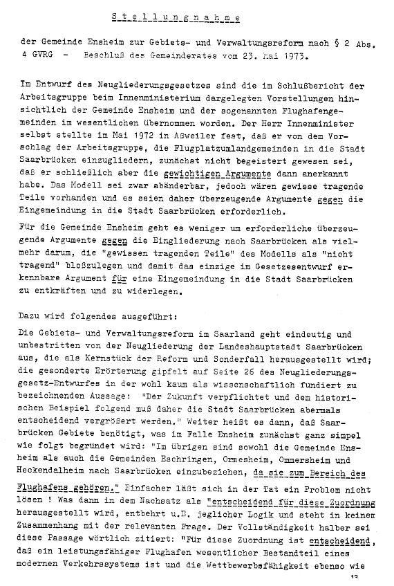 1. Beschluß des Gemeinderates Ensheim vom 23.05.1973, Seite 1: