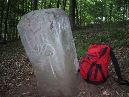 Der Wanderhans aus St. Ingbert hat mich auf diesen schief stehenden GRENZSTEIN südlich des Höhenweges über den BETZENKOPF südlich von St. Ingbert hingewiesen und mir auch gleich die beiden folgenden Fotos geschickt. Vielen Dank, Hans!!!
