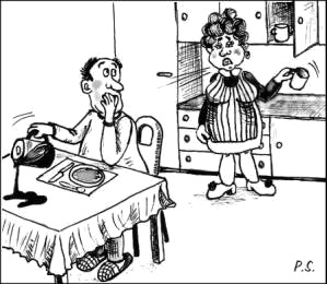 „Du Debbes! Dìer mussma aa imma die gòns Husshalding nòhdròòn!“