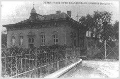 der Grundstein dieses Hauses gelegt. Gestiftet laut beiliegender Urkunde von den Theilhabern der Firma Gebrüder Adt zum Wohle ihr Arbeiter als Zeichen dankbarer Erinnerung an eine 50 jährige treue Mitarbeiterschaft, übergeben sie das Haus