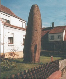 In Rentrisch, das vor der Französischen Revolution an der Grenze zwischen dem Ensheimer Besitz des Klosters Wadgassen und der Grafschaft Saarbrücken und zwischen 1816 und 1918 unmittelbar an der preußisch-bayerischen Grenze lag, befindet sich in einem Vorgarten ein wunderschöner Menhir, der sogenannte Spellenstein. Im Volksmund wurde dieser ca. 5 m hohe Stein auch als "Wetzstein" bezeichnet, weil sich der Sage nach die Riesen vom Großen Stiefel an ihm ihre Schwerter schärften. Einer anderen Sage zufolge hatte der Riese Kreuzmann diesen Stein vom Gipfel des Stiefel seinen Feinden nachgeschleudert, worauf er unten im Tal bei Rentrisch in der Erde stecken blieb.