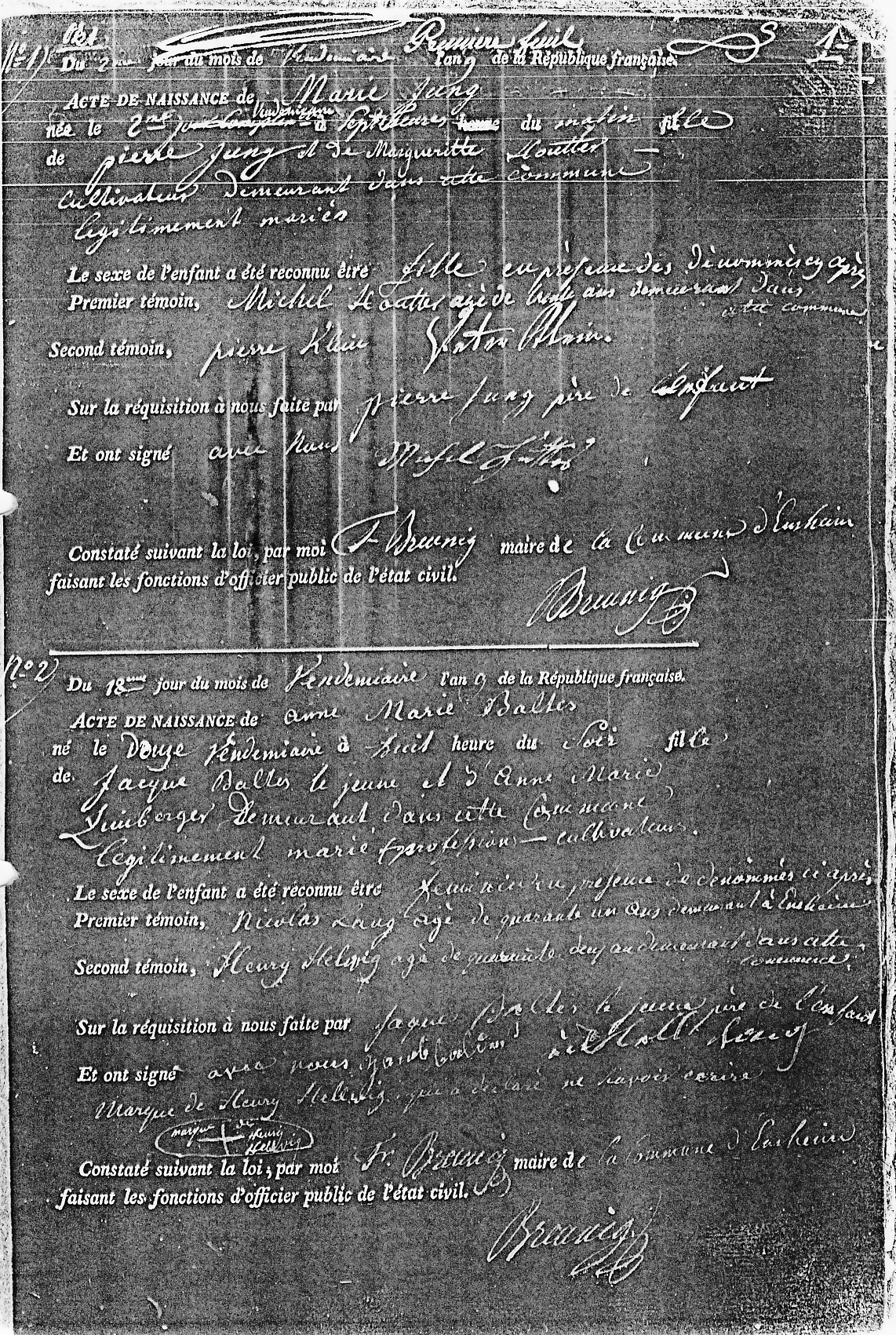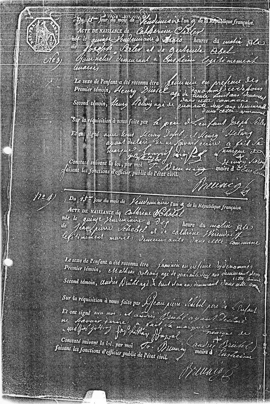 Geburtsregister, 1800/1801, Akt 3 und 4 [Bürgermeister BREUNIG]
